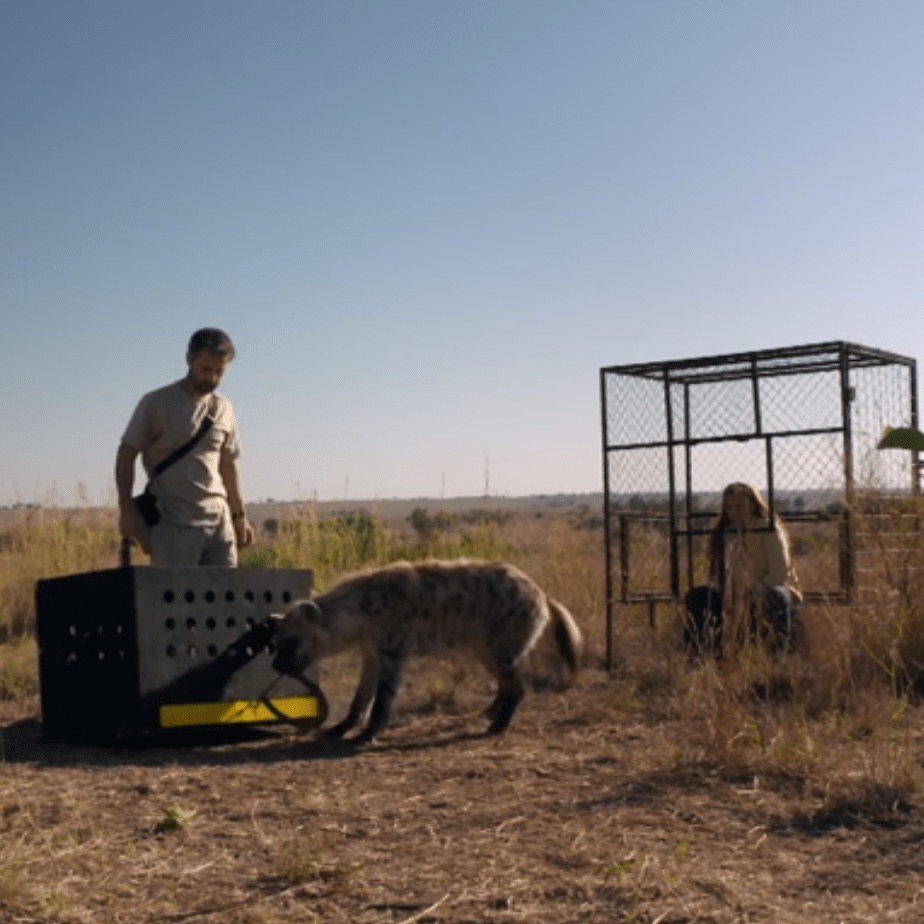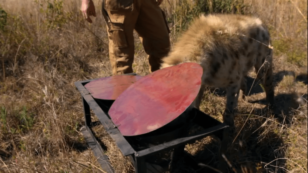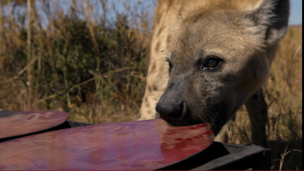 Scents of outsides animals were placed in the environments to see how the lions and hyenas both reacted and communicated.