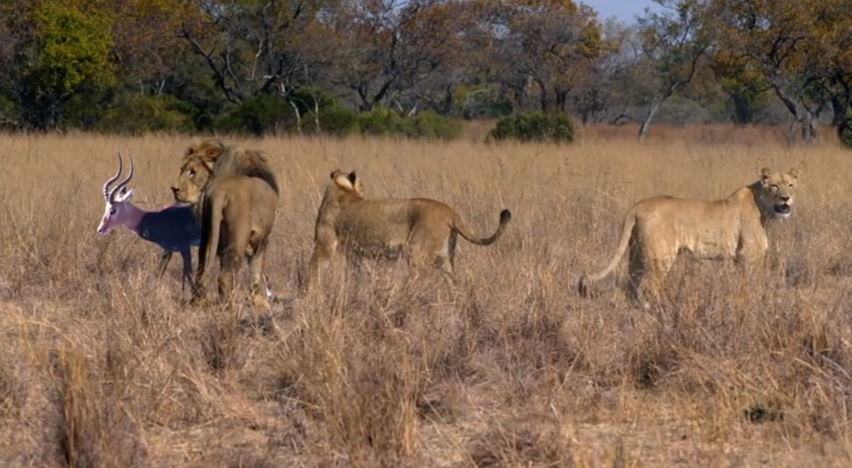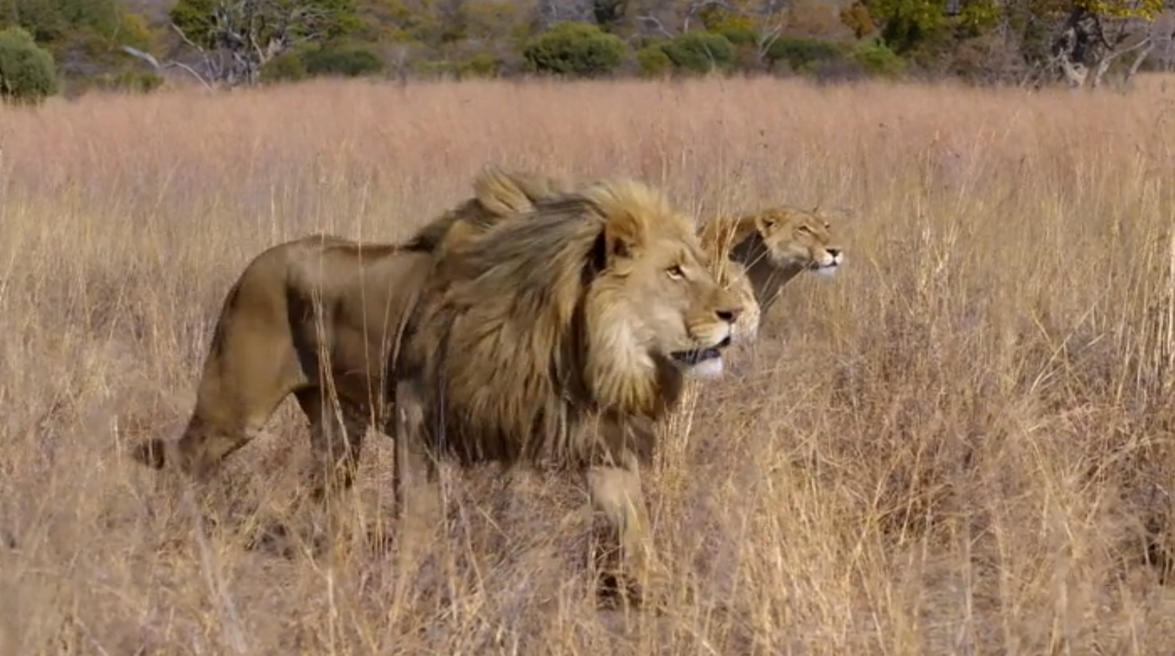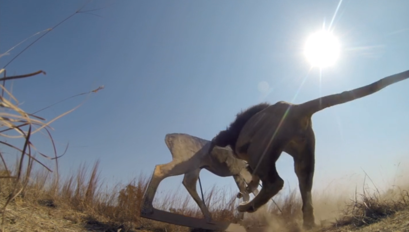 (This image is a screenshot of a clip used in the documentary, but it is not of the lions in the tests. It was a general lion hunting party clip used for illustration.)
