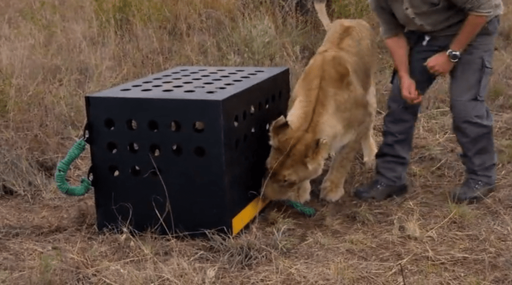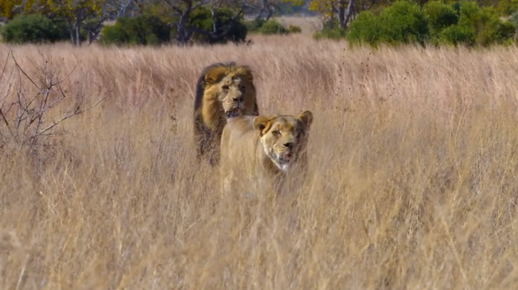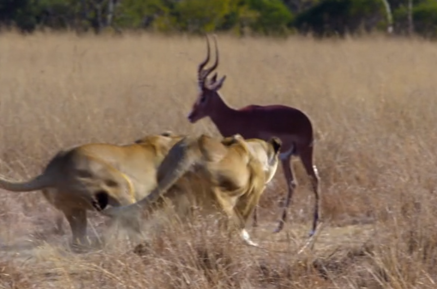 (This image is a screenshot of a clip used in the documentary, but it is not of the lions in the tests. It was a general lion hunting party clip used for illustration.)