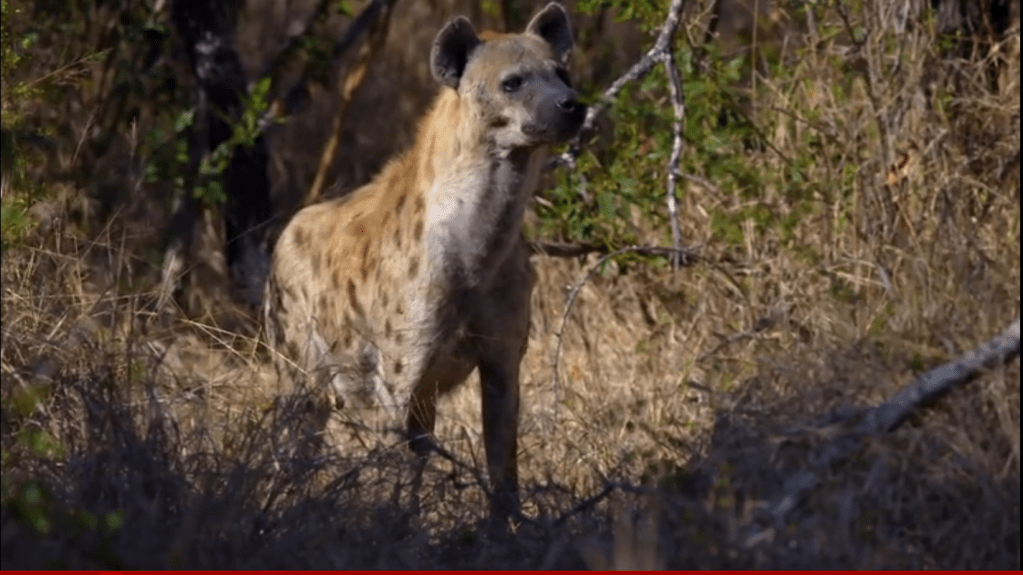 To attempt to make this easier to read and digest, backgrounds are color-coded as follows – blue = general info., yellow = lions, orange = hyenas. All images used are screenshots from the documentary.