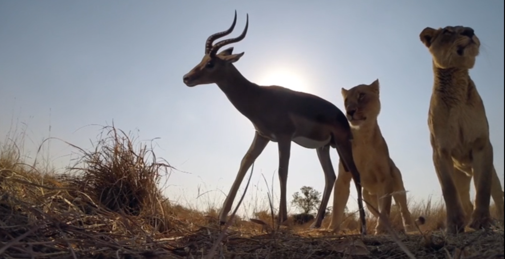 The lionesses attacked the same size prey (gazelle), this time stopping when they noticed it was a cutout and not a real animal.